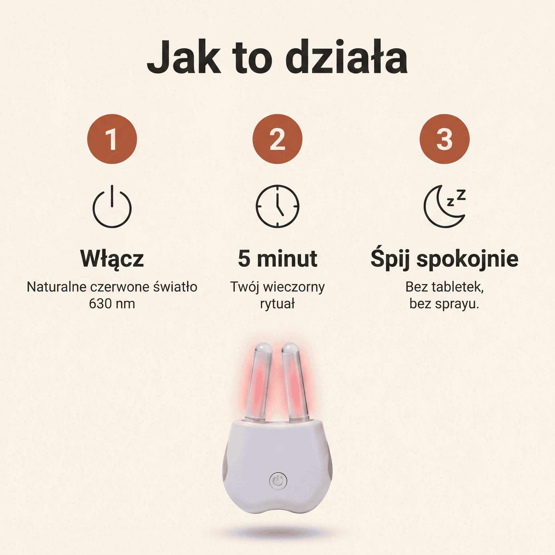 Jeden przycisk. Naturalne czerwone światło 630 nm.
